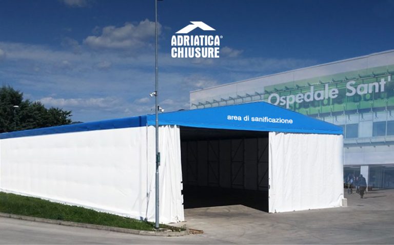I capannoni in ferro di Adriatica Chiusure presentano la parte strutturale in acciaio zincato a caldo con telo di copertura in PVC (tunnel mobili frontali, laterali e di collegamento) o pannelli.